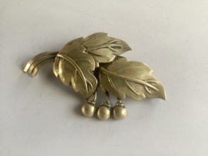 Broche af sølv udformet som blad.