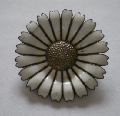Marguerit broche i forgyldt sølv med emalje, Ø 39,6 mm.