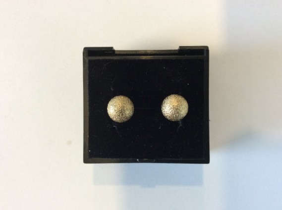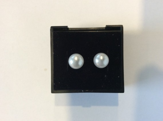 Ørestikker i forsølvet materiale, Med "perle" Ø ca. 8 mm.. Fremstår som ny.