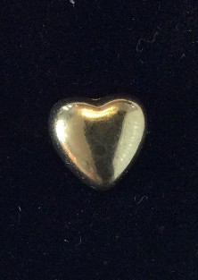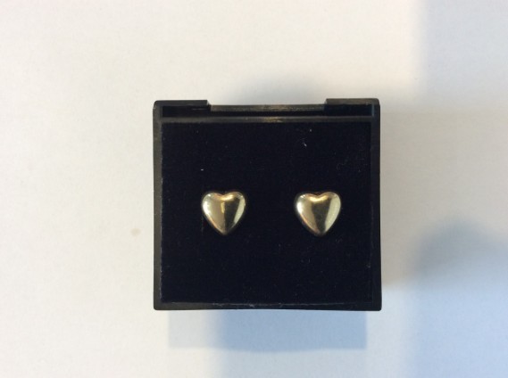 Ørestikker i forgyldt materiale, udformet som hjerte Ca. 8 mm. Fremstår som nye, og uden brugsspor.
