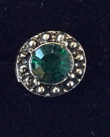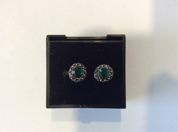 Ørestikker i forsølvet materiale, Rund Ca. Ø 9 mm. Med grøn sten. Fremstår som ny.