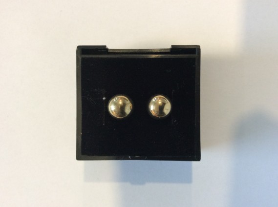 Ørestikkersom perle i forgyldt materiale, Ø ca. 8 mm.. Fremstår som ny.