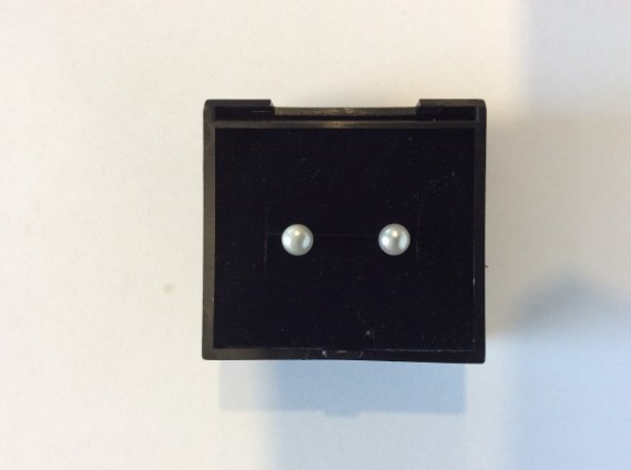 Ørestikker i forsølvet materiale, Med "perle" Ø ca. 4 mm.. Fremstår som ny.